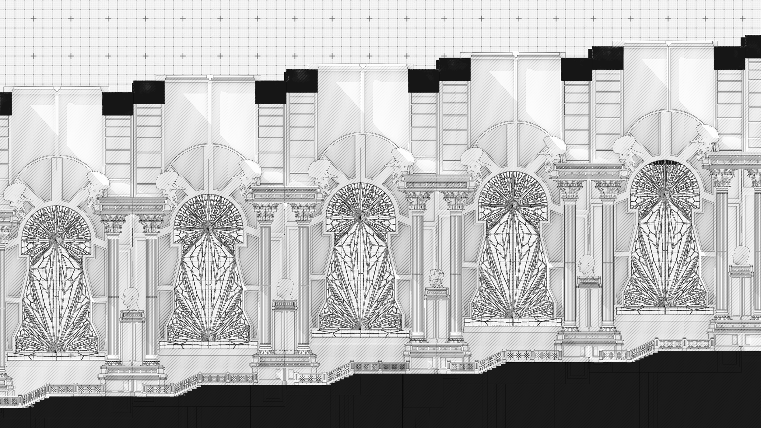 His vision for the city shows a dazzling collage of beautiful architecture on the surface, but also deliberately shows the dark, hidden underworld beneath the city – a reflection of society’s inclination towards hubris, negativity and corruption. The intention is that to truly show off a utopia, one must also show the hidden structures that prop it up - and those that lead to its eventual collapse…